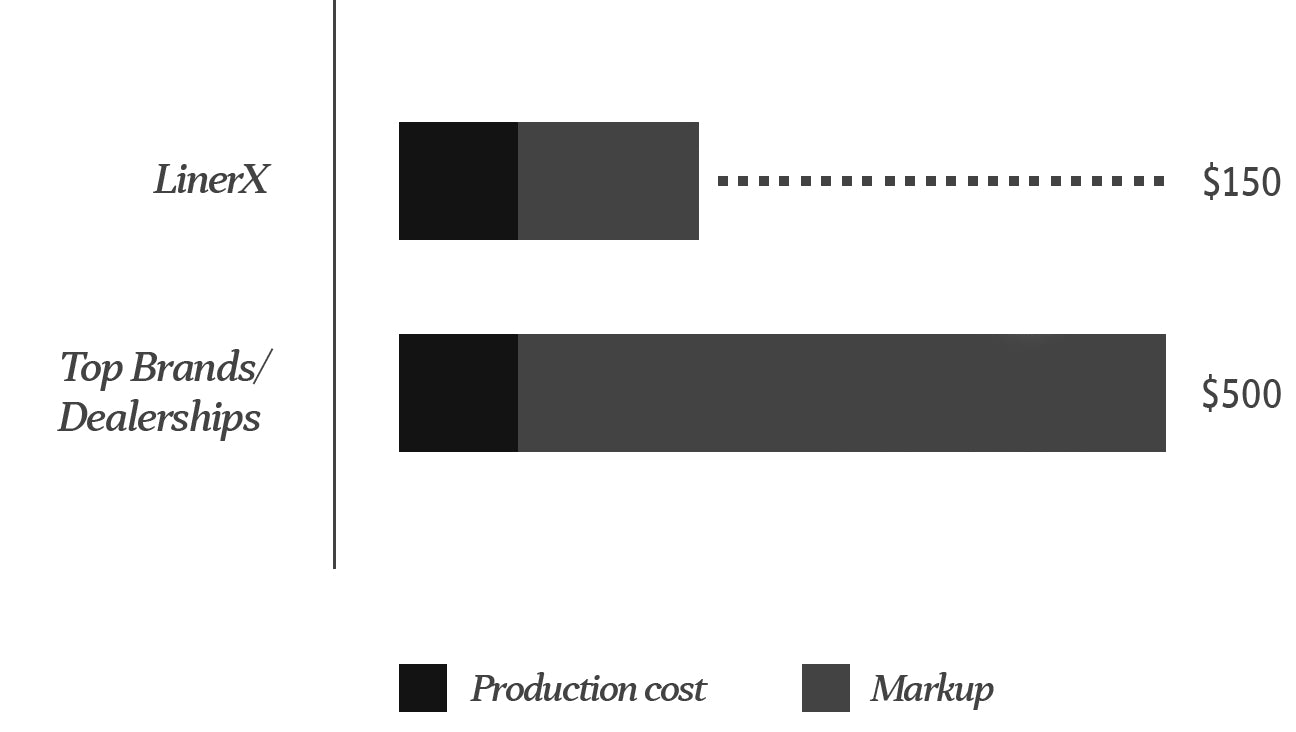 "We were a bit worried to order the mats for our new vehicle from LinerX as the price difference was quite a bit between LinerX and the factory. We were worried that the quality would be subpar but the mats fits perfectly and at 1/3rd the price, we are very impressed."